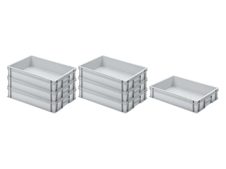 PROREGAL SuperSparSet 8x Eurobehälter mit Geschlossenem Griff HxBxT 12 x 40 x 60 cm 21 Liter Grau Eurobox Transportbox