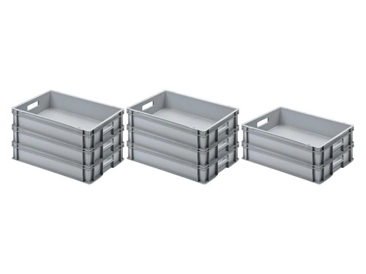 PROREGAL SuperSparSet 8x Eurobehälter mit Offenem Griff HxBxT 12 x 40 x 60 cm 21 Liter Grau Eurobox Transportbox