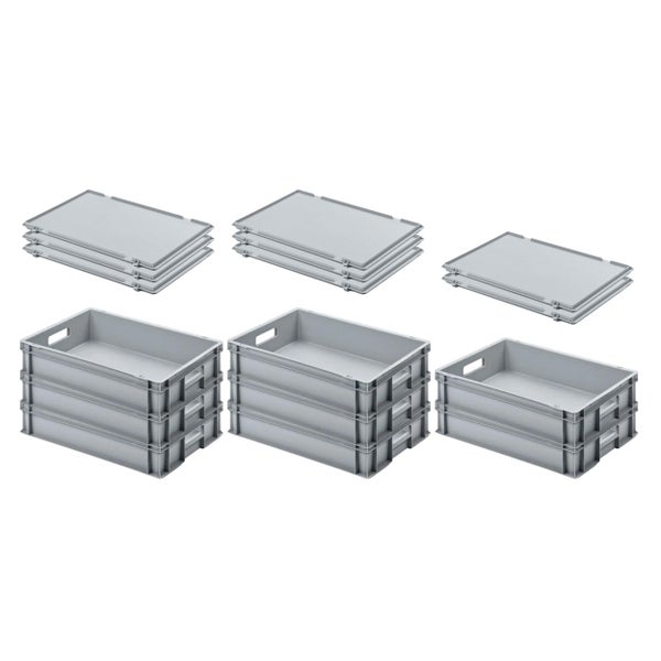 PROREGAL SuperSparSet 8x Eurobehälter mit Offenem Griff und Scharnierdeckel HxBxT 12 x 40 x 60 cm 21 Liter Grau Eurobox Transportbox