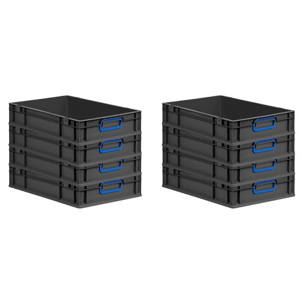 PROREGAL SuperSparSet 8x Eurobox NextGen Color, HxBxT 12x40x60cm, 23 Liter, Griffe blau geschlossen, Schwarz, Eurobehälter, Transportbox, Transportbehälter, Stapelbehälter