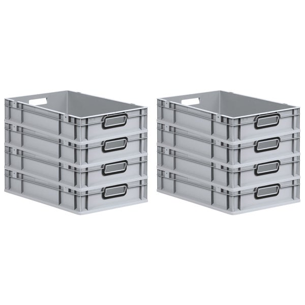PROREGAL SuperSparSet 8x Eurobox NextGen Color, HxBxT 12x40x60cm, 23 Liter, Griffe schwarz offen, Grau, Eurobehälter, Transportbox, Transportbehälter, Stapelbehälter