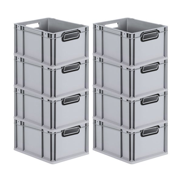 PROREGAL SuperSparSet 8x Eurobox NextGen Color, HxBxT 22x30x40cm, 20 Liter, Griffe schwarz offen, Grau, Eurobehälter, Transportbox, Transportbehälter, Stapelbehälter