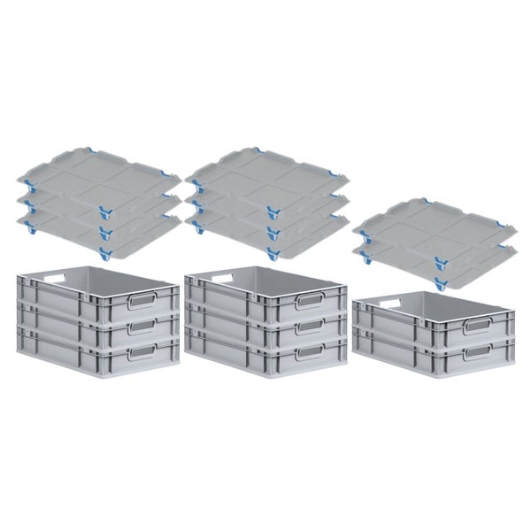 PROREGAL SuperSparSet 8x Eurobox NextGen Grip mit Auflagedeckel mit 4 Blauen Schiebeschnappverschlüssen HxBxT 12 x 40 x 60 cm 23 Liter Griffe