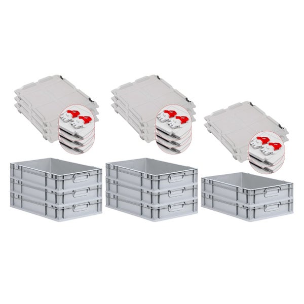 PROREGAL SuperSparSet 8x Eurobox NextGen Grip mit Scharnierdeckel und Roten Schiebeschnappverschlüssen HxBxT 12 x 40 x 60 cm 23 Liter