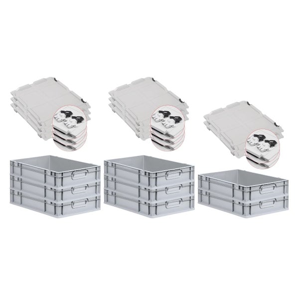 PROREGAL SuperSparSet 8x Eurobox NextGen Grip mit Scharnierdeckel und Schwarzen Schiebeschnappverschlüssen HxBxT 12 x 40 x 60 cm 23 Liter