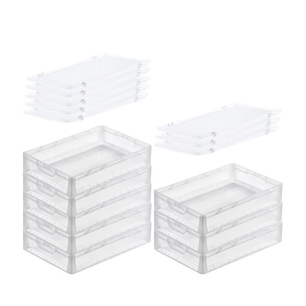 PROREGAL SuperSparSet 8x Transparenter Eurobehälter LightLine mit Offenem Griff und Auflagedeckel HxBxT 12 x 40 x 60 cm 24 Liter Eurobox