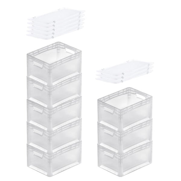 -Robuste Eurobox mit Auflagedeckel in Euronorm für Industrie & Gewerbe: die transparente Eurobox aus stabilem Kunststoff (PPC) ist der perfekte Eurobehälter für Lagerung, Transport und Aufbewahrung