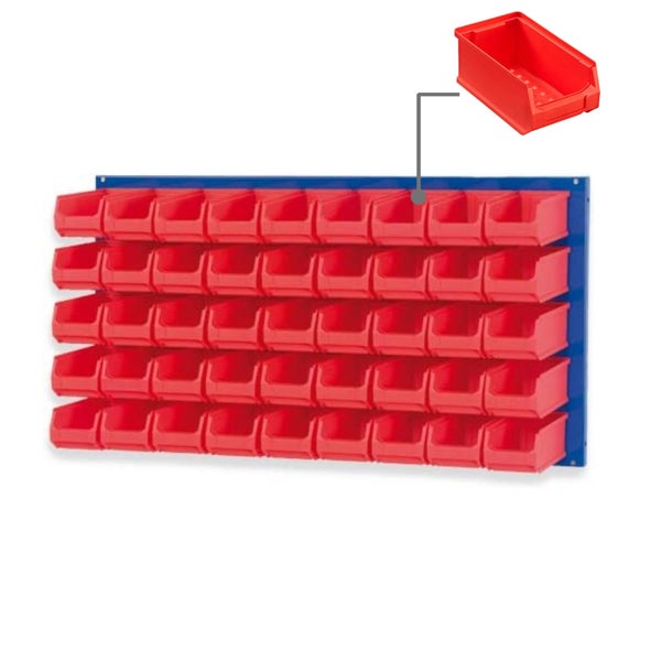 PROREGAL Trägersystem Blaue Systemplatte mit 45 x Roten Sichtlagerboxen 2.0 Maße H x B 50 x 100 cm Sichtlagerbox Sichtlagerbehälter