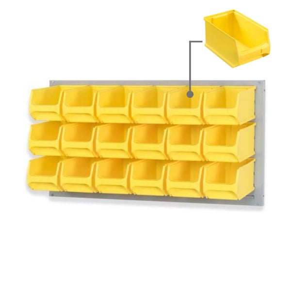 PROREGAL Trägersystem Graue Systemplatte mit 18 x Gelben Sichtlagerboxen 3.0 Maße H x B 50 x 100 cm Sichtlagerbox Sichtlagerbehälter