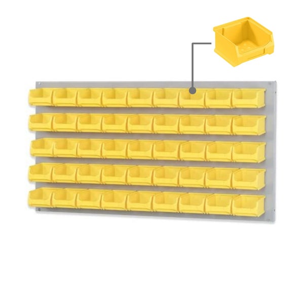 PROREGAL Trägersystem Graue Systemplatte mit 45 x Gelben Sichtlagerboxen 1.0 Maße H x B 50 x 100 cm Sichtlagerbox Sichtlagerbehälter
