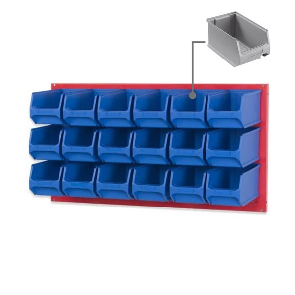 PROREGAL Trägersystem Rote Systemplatte mit 18 x Grauen Sichtlagerboxen 3.0 Maße H x B 50 x 100 cm Sichtlagerbox Sichtlagerbehälter