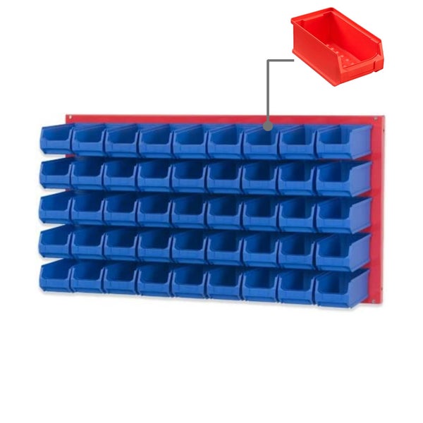 PROREGAL Trägersystem Rote Systemplatte mit 45 x Roten Sichtlagerboxen 2.0 Maße H x B 50 x 100 cm Sichtlagerbox Sichtlagerbehälter
