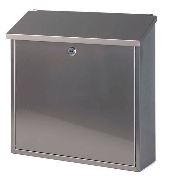 PROREGAL Wandbriefkasten Malagan Mit Zylinderschloss HxBxT 37 x 37 x 11,5 cm Einwurfsöffnung 35,8 x 4 cm Edelstahl & Silber