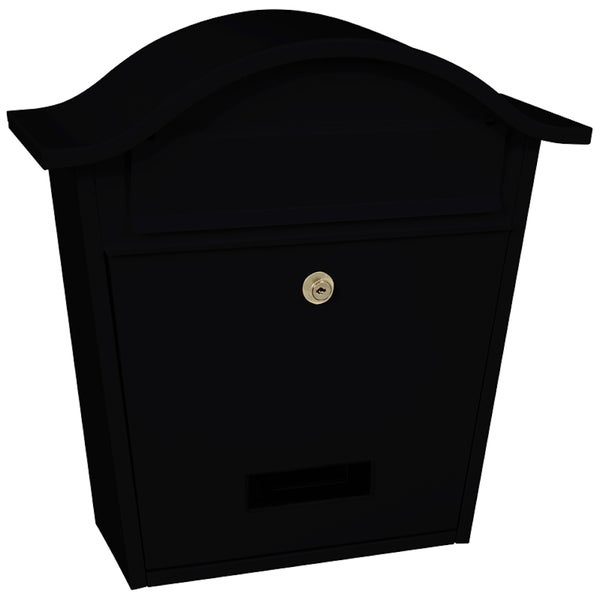 Besonders geformter Wandbriefkasten aus pulverbeschichtetem verzinktem Stahl mit Zylinderschloss und Namensschild. Die Einwurföffnung (23 x 4 cm) befindet sich hinter einer Klappe.