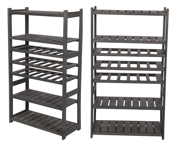 Erhältlich in den Farben Natur, Braun oder Grau, fügt sich das Regal harmonisch in jedes Raumkonzept ein und verleiht deinem Zuhause oder Geschäft eine rustikale, aber moderne Note.