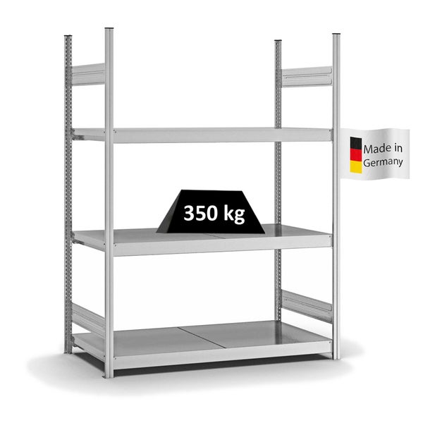 PROREGAL Weitspannregal Stecksystem T-Profil Grundregal HxBxT 200x150x60 cm 3 Ebenen Stahlplatten Fachboden Fachlast 350 kg Verzinkt