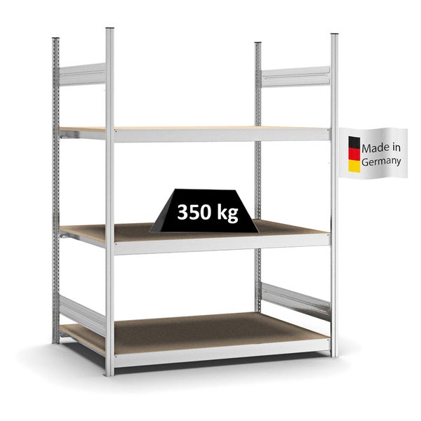 PROREGAL Weitspannregal Stecksystem T-Profil Grundregal HxBxT 200x150x80 cm 3 Ebenen Spanplatten Fachboden Fachlast 350 kg Verzinkt