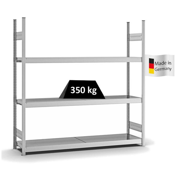 PROREGAL Weitspannregal Stecksystem T-Profil Grundregal HxBxT 200x200x40 cm 3 Ebenen Stahlplatten Fachboden Fachlast 350 kg Verzinkt