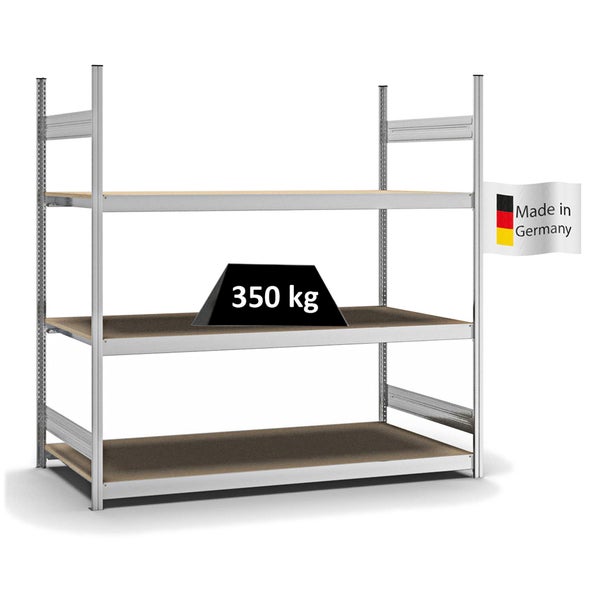 PROREGAL Weitspannregal Stecksystem T-Profil Grundregal HxBxT 200x200x80 cm 3 Ebenen Spanplatten Fachboden Fachlast 350 kg Verzinkt