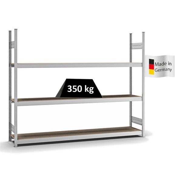 PROREGAL Weitspannregal Stecksystem T-Profil Grundregal HxBxT 200x250x40 cm 3 Ebenen Spanplatten Fachboden Fachlast 350 kg Verzinkt