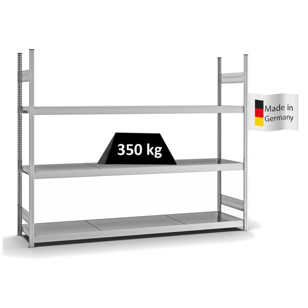PROREGAL Weitspannregal Stecksystem T-Profil Grundregal HxBxT 200x250x50 cm 3 Ebenen Stahlplatten Fachboden Fachlast 350 kg Verzinkt