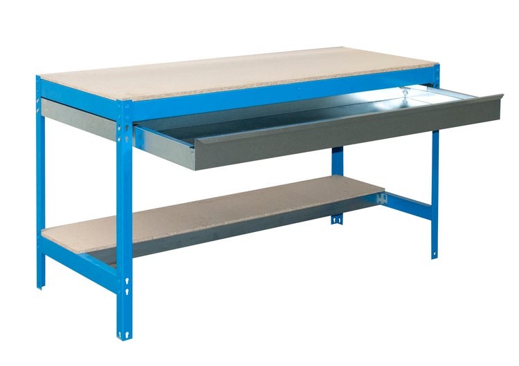 Werkbank BUFFALO mit Schubfach | HxBxT 84x120x76cm | Traglast 600kg | Blau