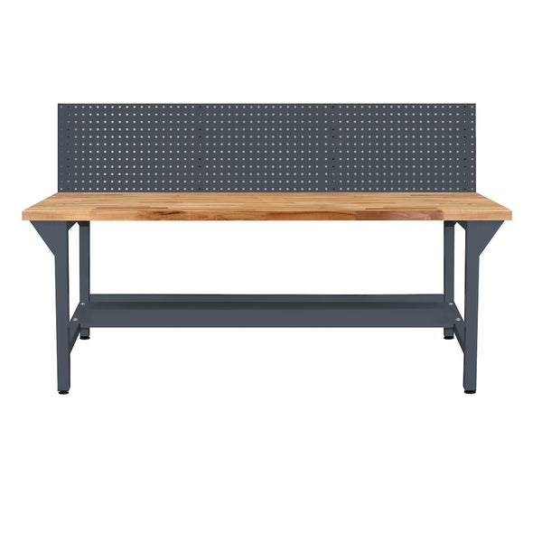 Die PROREGAL Werkbank wird mit einer massiven Buchenholzplatte und komplett verschweißten Untergestell geliefert. Durch die Lochwand, bietet der Werktisch eine gute Aufbewahrungsmöglichkeit für Werkzeug. Die Werkbank ist daher ideal für Ihre Werkstatt oder als Ergänzung im Heimwerkerbereich geeignet.