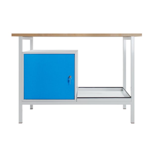 PROREGAL Werkbank Light Rhino mit Ablagefach 1 Tür HxBxT 82,5 x 120 x 60 cm Traglast 300 kg Lichtgrau Blau
