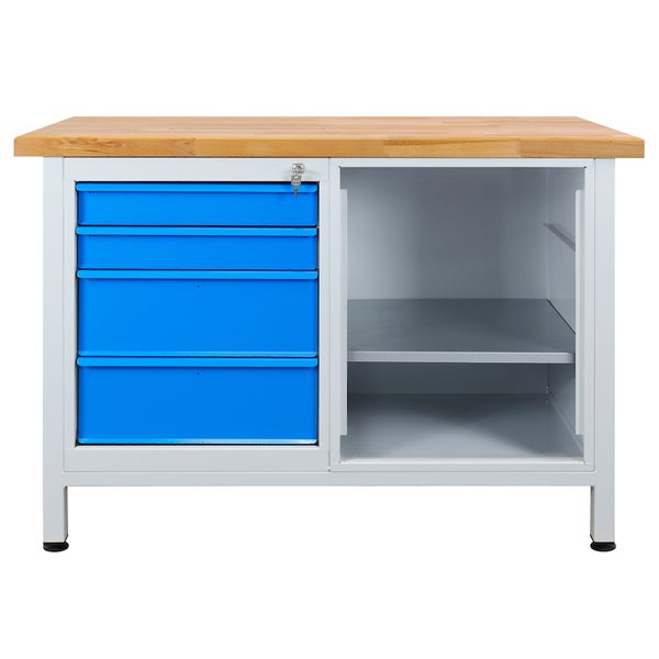 PROREGAL Werkbank Rhino mit 4 Schubladen Regalteil HxBxT 84 x 120 x 60 cm Traglast 300 kg Lichtgrau Blau