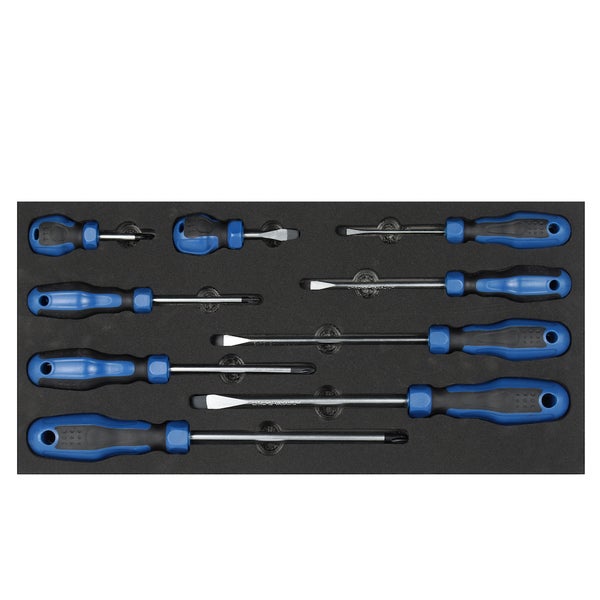 PROREGAL Werkzeug Satz für Werkstattwagen Cheetah Plus Schraubendrehersatz 9 Teile mit Schaumstoff Schubladeneinlage HxBxT 3,5 x 40 x 19 cm