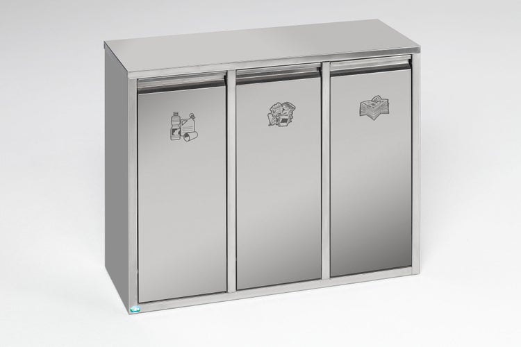 PROREGAL Wertstoffsortiersystem Mit 3 Klapptüren Stand Oder Wandbefestigung 36 Liter HxBxT 57 x 70,5 x 27 cm Edelstahl