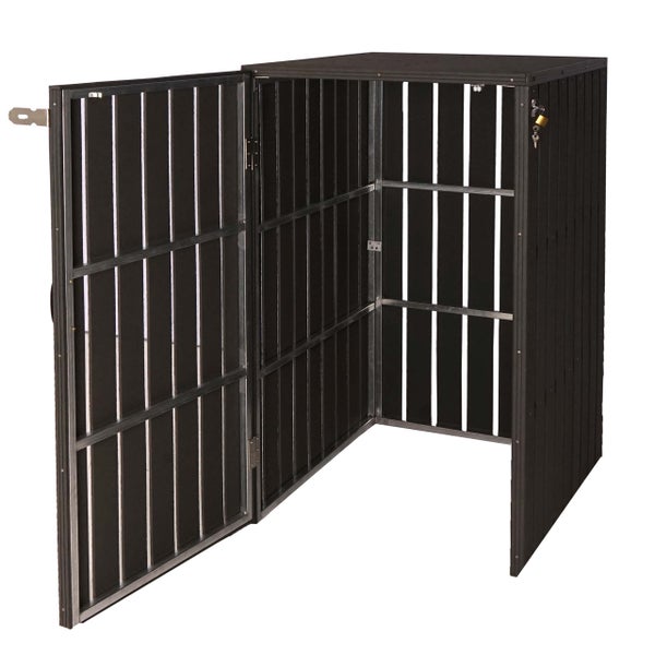 PROREGAL XL 1er-/2er-WPC-Mülltonnenverkleidung, HxBxT 115x77x97 cm, Metall Holzoptik, erweiterbar, Anthrazit, Gitterbox Mülltonnenbox