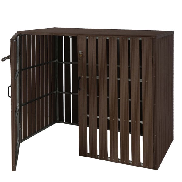 PROREGAL XL 2er-/4er-WPC-Mülltonnenverkleidung, HxBxT 115x140x100 cm, Metall Holzoptik, erweiterbar, Braun, Gitterbox Mülltonnenbox