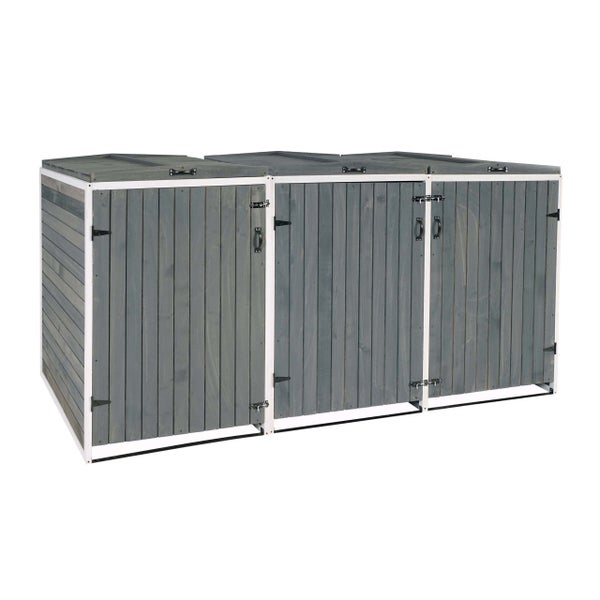 PROREGAL XL 3er-/6er-Mülltonnenverkleidung, HxBxT 126x237,5x98 cm, Grau-Weiß, Mülltonnenbox Mülltonnenabdeckung Holz