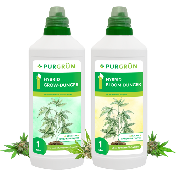 Unser speziell zusammengestelltes Purgrün Hybrid-Dünger-Set ist Ihr unverzichtbarer Begleiter für eine optimale Pflanzenentwicklung von der Pflanzung bis zur Ernte. Das Set besteht aus unserem Hybrid-Grow-Dünger für die entscheidende Wachstumsphase und dem Hybrid-Bloom-Dünger für die anspruchsvolle Blühphase.