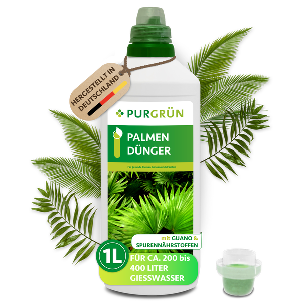 Der Purgrün Palmendünger ist die perfekte Wahl für die effiziente Düngung von Palmen im Zimmer, Garten, auf der Terrasse und im Haus. Unsere spezielle Formel bietet alle essenziellen Haupt- und Spurennährstoffe, die Palmen für ein kräftiges Wachstum und eine üppige Blattpracht benötigen. Der hohe Stickstoffgehalt stellt ein schnelles Wachstum und kräftig grüne Palmwedel sicher.