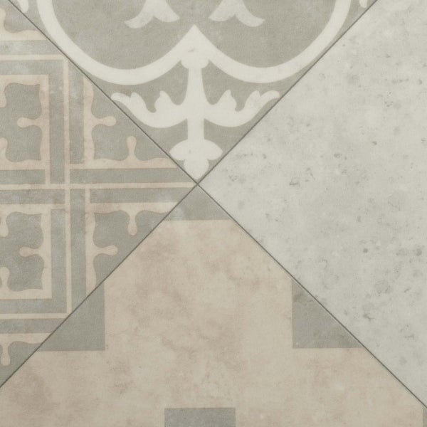 PVC Bodenbelag Meterware Retro Fliesenoptik Beige Grau mit Vliesrücken 200 cm breit (Meterware)