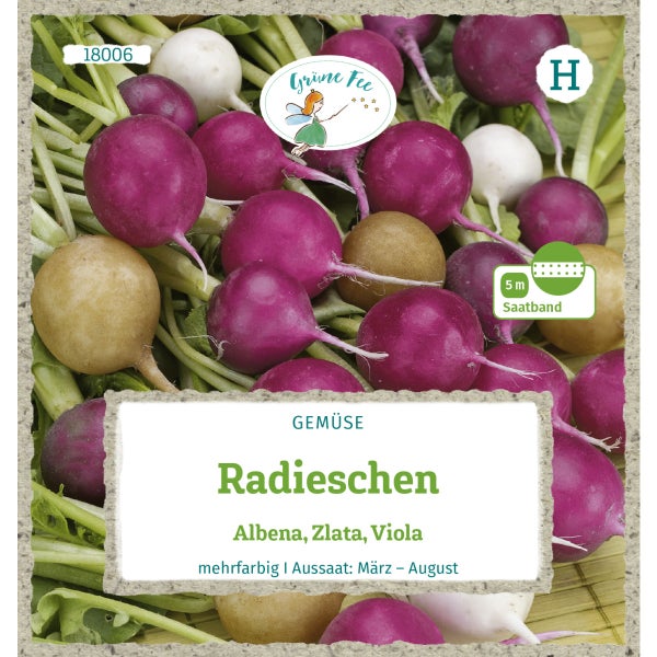 Radieschen Albena Zlata Viola Saatband 5 m Samen von Grüne Fee