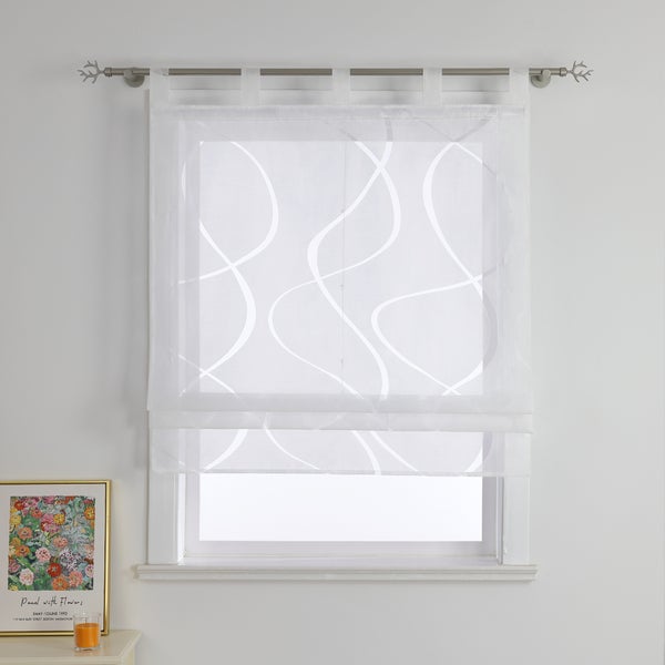 Raffrollo mit Ausbrenner-Kurvenmuster und Schlaufen Weiß Voile HxB 140x60 cm