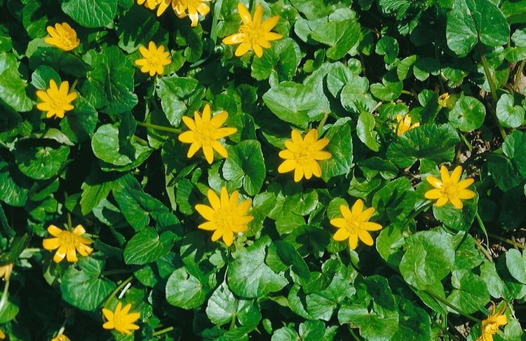 Ranunculus ficaria, das heimische Scharbockskraut, ist eine früh blühende Staude und zuverlässiger Frühlingsblüher, der mit seinen glänzenden, sternförmigen, goldgelben Blüten bereits von März bis April leuchtende Akzente setzt. Das herzförmige, dunkelgrüne Laub wirkt frisch und vital, bildet dichte Teppiche und zieht nach der Blüte im Frühsommer dezent ein, wodurch Platz für spätere Gartenstauden entsteht. Mit niedriger, teppichbildender Wuchsform von etwa 5 bis 10 cm eignet sich diese Bodendecker-Staude ideal zur flächigen Unterpflanzung und als natürlicher Lückenfüller.
