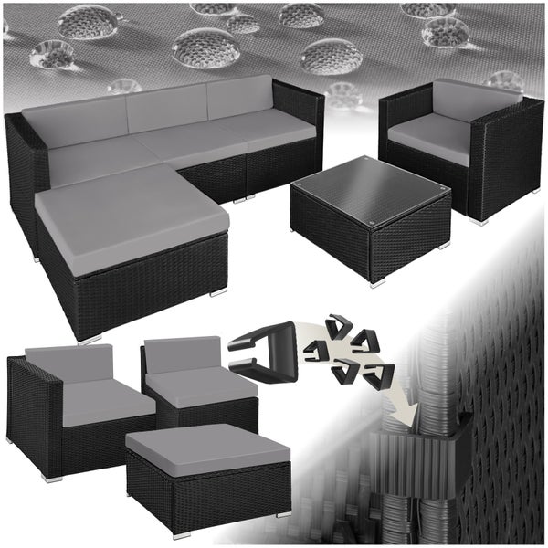 Rattan Lounge tectake Milano mit Sicherheitsglasplatte für 4 bis 5 Personen schwarz/grau