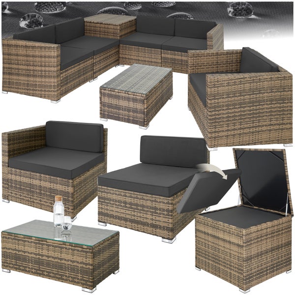 Rattan Lounge tectake Pisa inklusive großer Aufbewahrungsbox für 5 Personen natur
