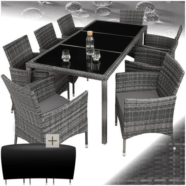 Rattan Sitzgruppe tectake Almansa inklusive Schutzhülle für 8 Personen grau-meliert/grau