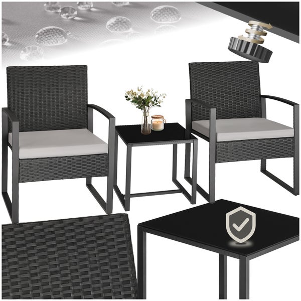Rattan Sitzgruppe tectake Granada höhenverstellbare Kunststofffüße für 2 Personen hellgrau/schwarz