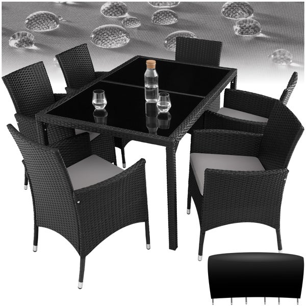 Rattan Sitzgruppe tectake Porto inklusive Schutzhülle für 6 Personen schwarz/grau