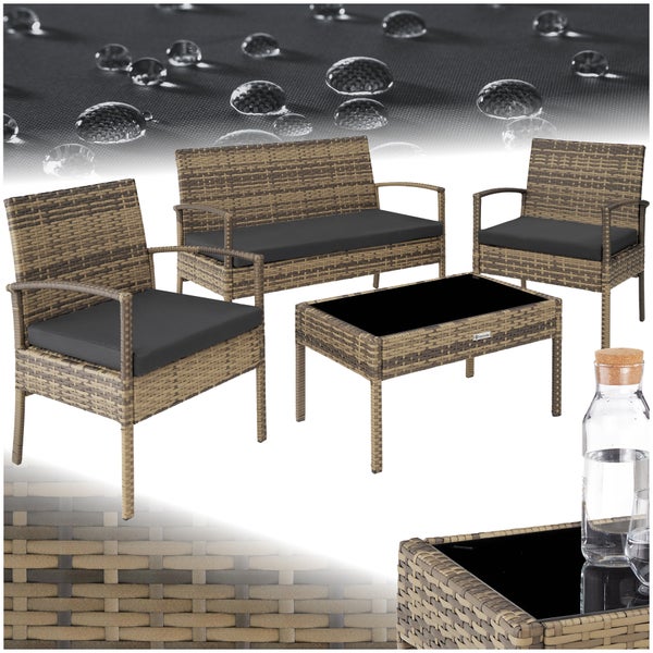 Rattan Sitzgruppe tectake Sparta schlanke Gestelle für 4 Personen natur