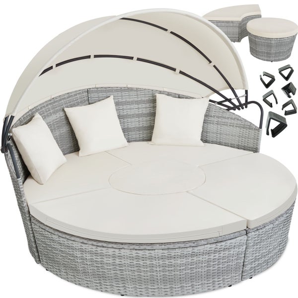 Rattan Sonneninsel tectake Sansibar variabel aufstellbar mit Aluminiumgestell hellgrau