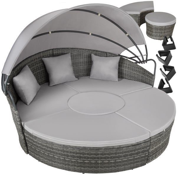 Rattan Sonneninsel tectake Santorin variabel aufstellbar widerstandsfähig grau/hellgrau