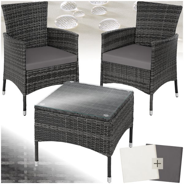 Rattanset tectake Luzern 2 Bezugssets für 2 Personen grau