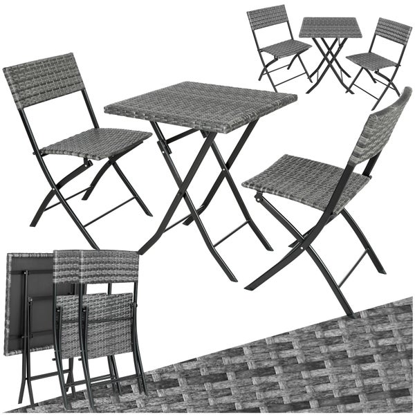 Dieses dreiteilige Rattanset von tectake überzeugt mit schicker Optik, hoher Flexibilität und viel Gemütlichkeit. Die kompakte Sitzgarnitur eignet sich ideal für kleine Balkone, Terrassen oder Nischen. Bei Nichtgebrauch lassen sich die einzelnen Elemente platzsparend zusammenklappen. Der Tisch sowie die beiden Stühle aus pulverbeschichtetem Stahl und dem feinen Geflecht aus strapazierfähigem Polyrattan werden fertig montiert geliefert. Die Kombination aus robustem Gestell und geringem Gewicht machen dieses pflegeleichte Rattanset von tectake perfekt für den Transport und fürs Campen.